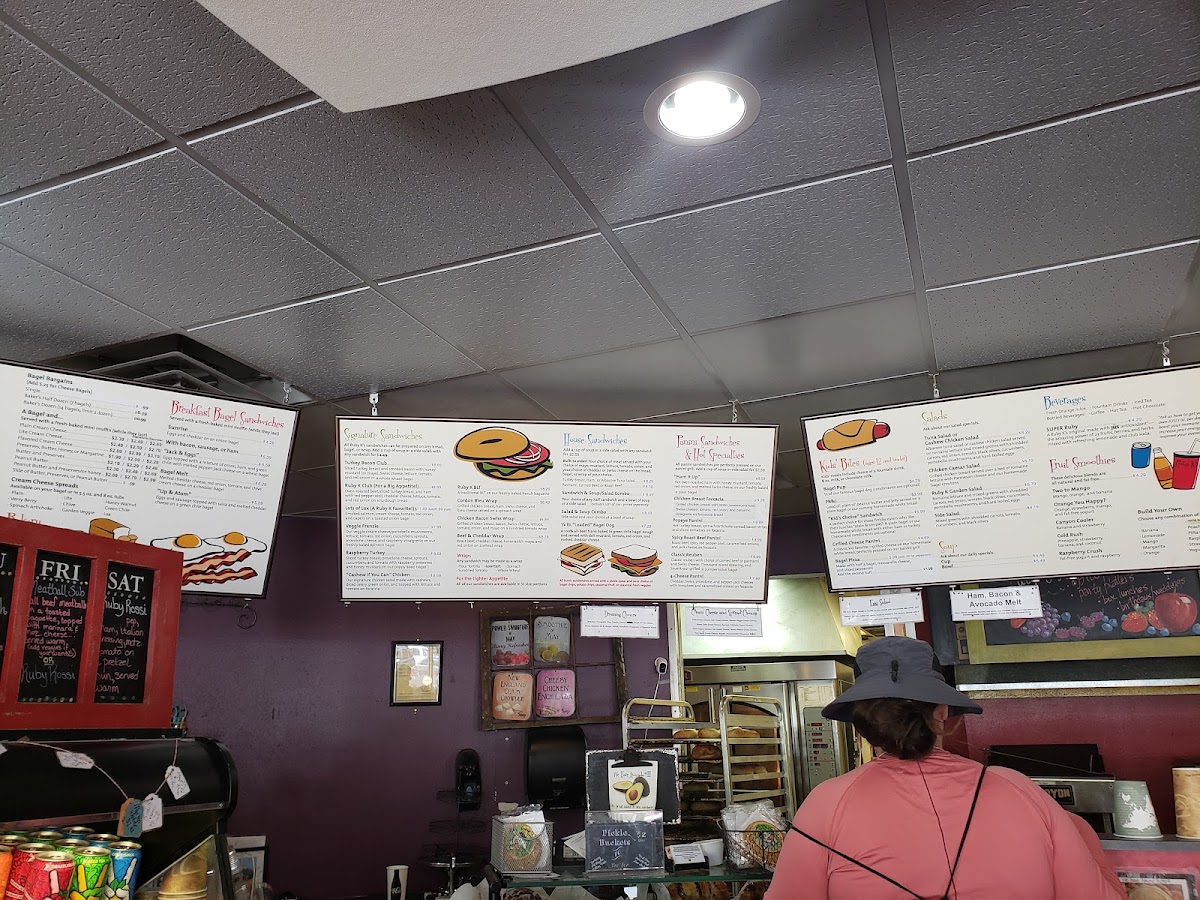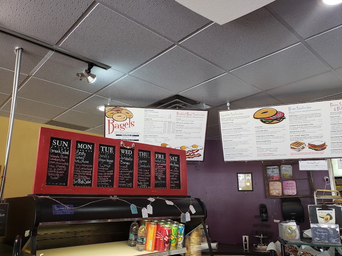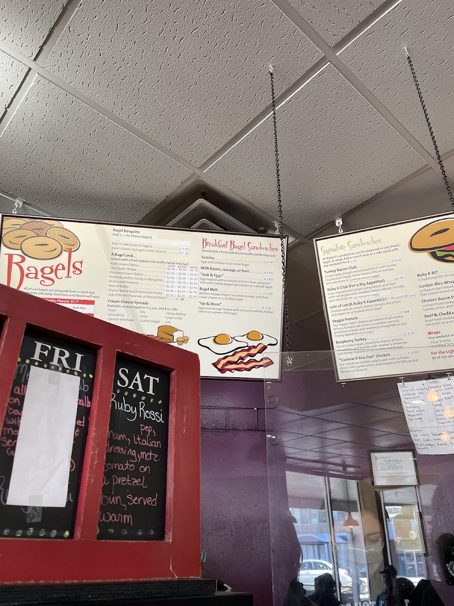 Welcome to Ruby K's Bagel Cafe, a delightful haven for bagel enthusiasts nestled at 1789 Central Ave, Los Alamos. This cozy cafe specializes in an extensive array of bagels, featuring unique flavors like Cranberry Walnut and Green Chile Cheddar. The bagels are known for their exceptional softness, making them perfect for their tantalizing breakfast bagel sandwiches. Try the Sunrise, with eggs and cheddar on a toasted onion bagel, or the Jack & Eggs, bursting with ham and green chile. Each dish promises satisfying portions at reasonable prices, as noted by our patrons who rave about the quality and flavor. Be sure to quench your thirst with their refreshing Super Ruby drink, a delightful blend of 23 fruits and herbs. Don’t miss out—arrive early to snag your favorites, as the selection can dwindle by midday. Experience the warmth, flavor, and creativity at Ruby K's, where every bite brings a smile!